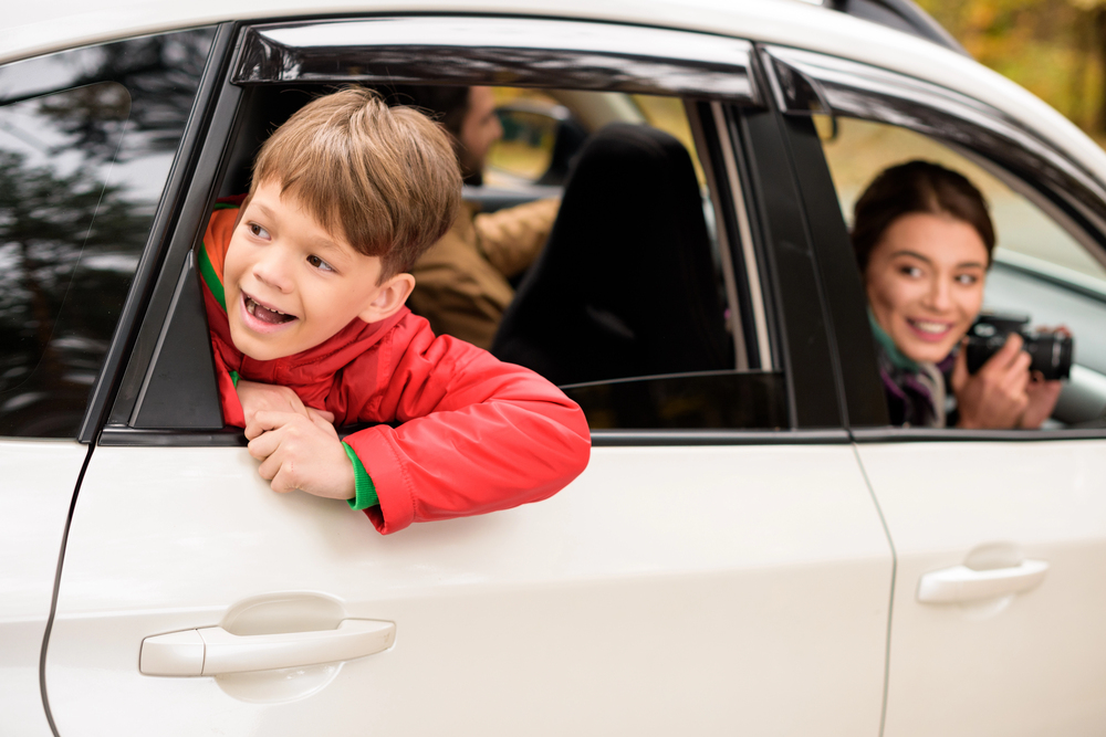 Alt-text: Mașină de familie cu paravânturi auto